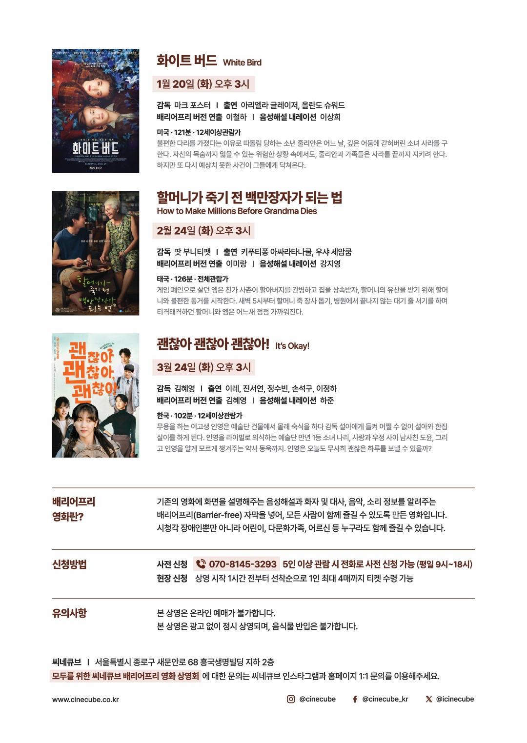 모두를 위한 배리어프리 영화 상영회 - 1/20(화) <화이트 버드>